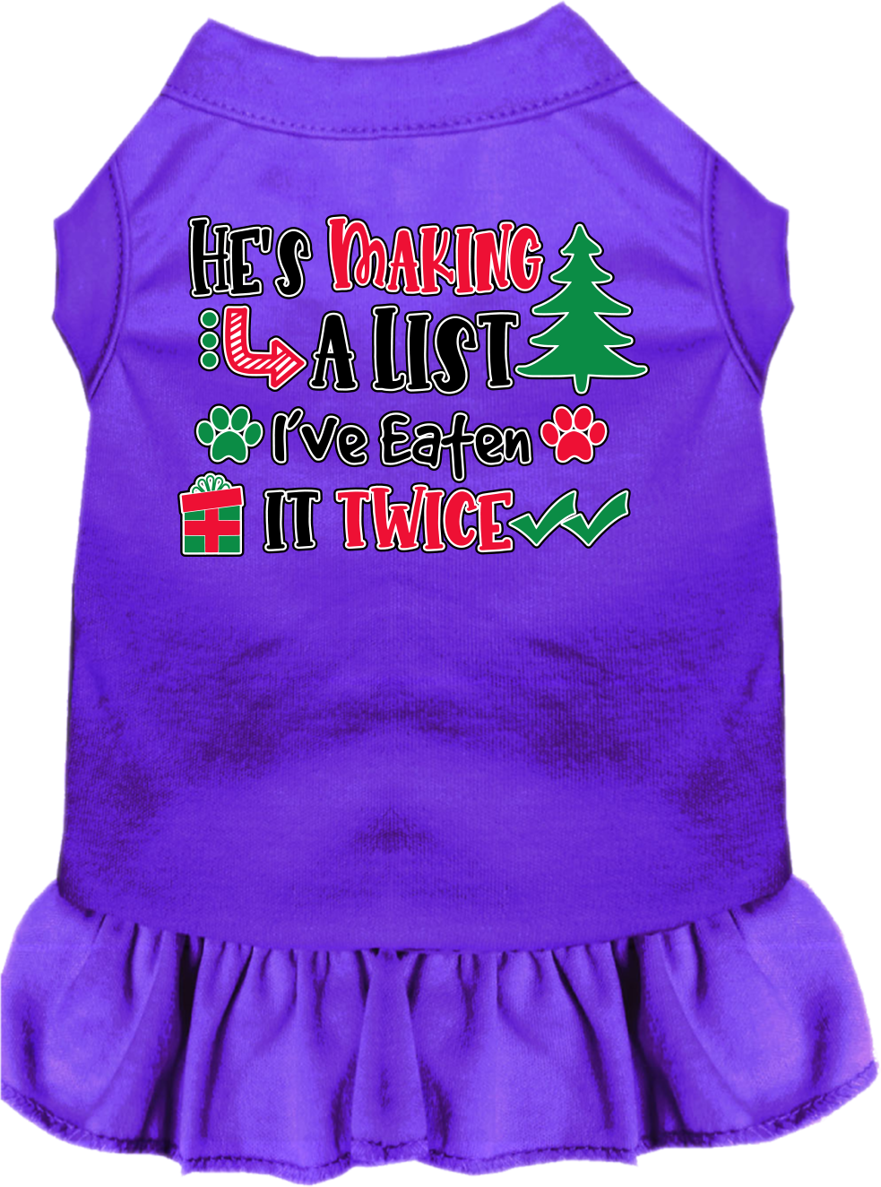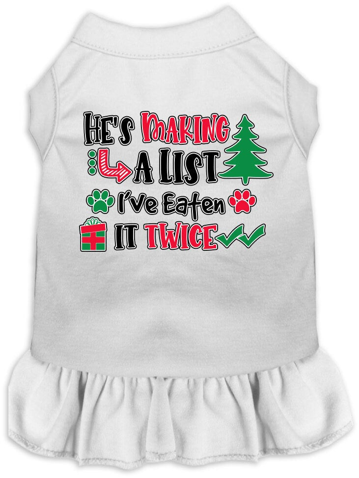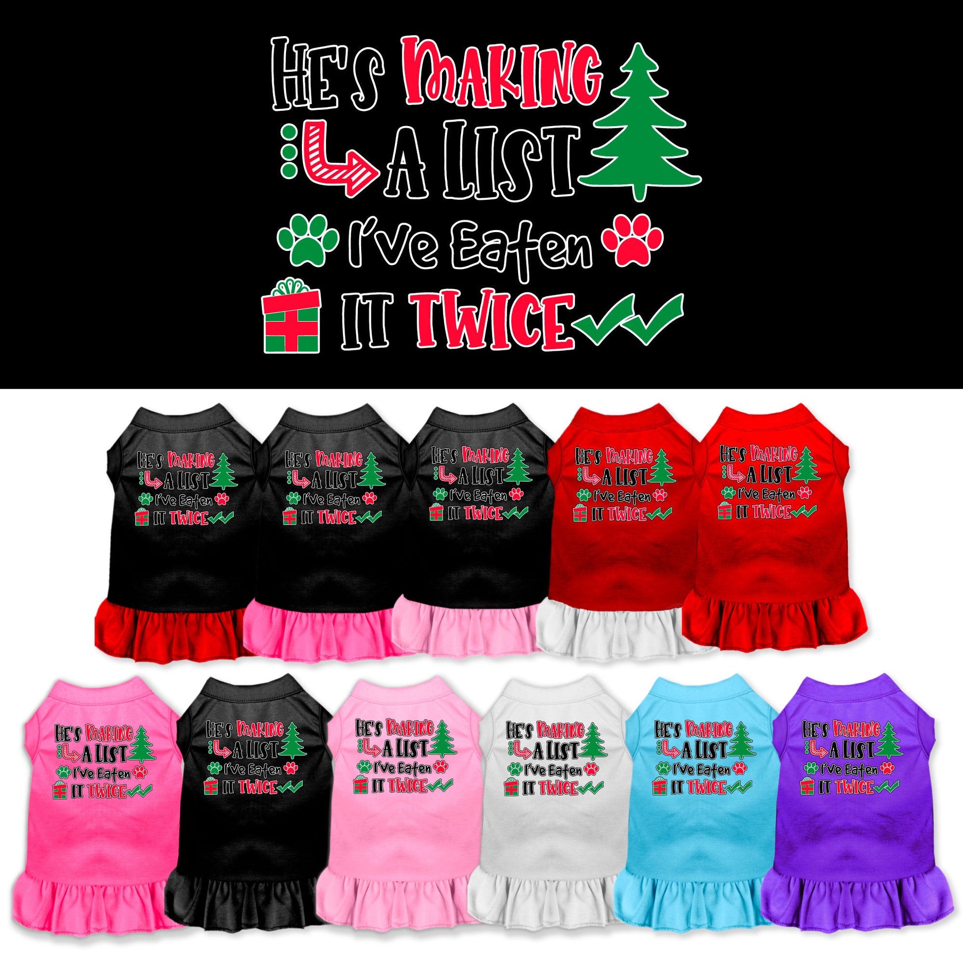 Christmas Pet, Dog and Cat Dress Screen Printed, "He's Making A List, I've Eaten It Twice"