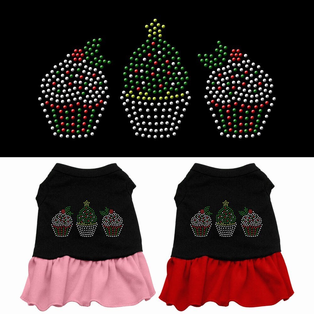 Christmas Pet Dog & Cat Dress Rhinestone, "Christmas Cupcakes"