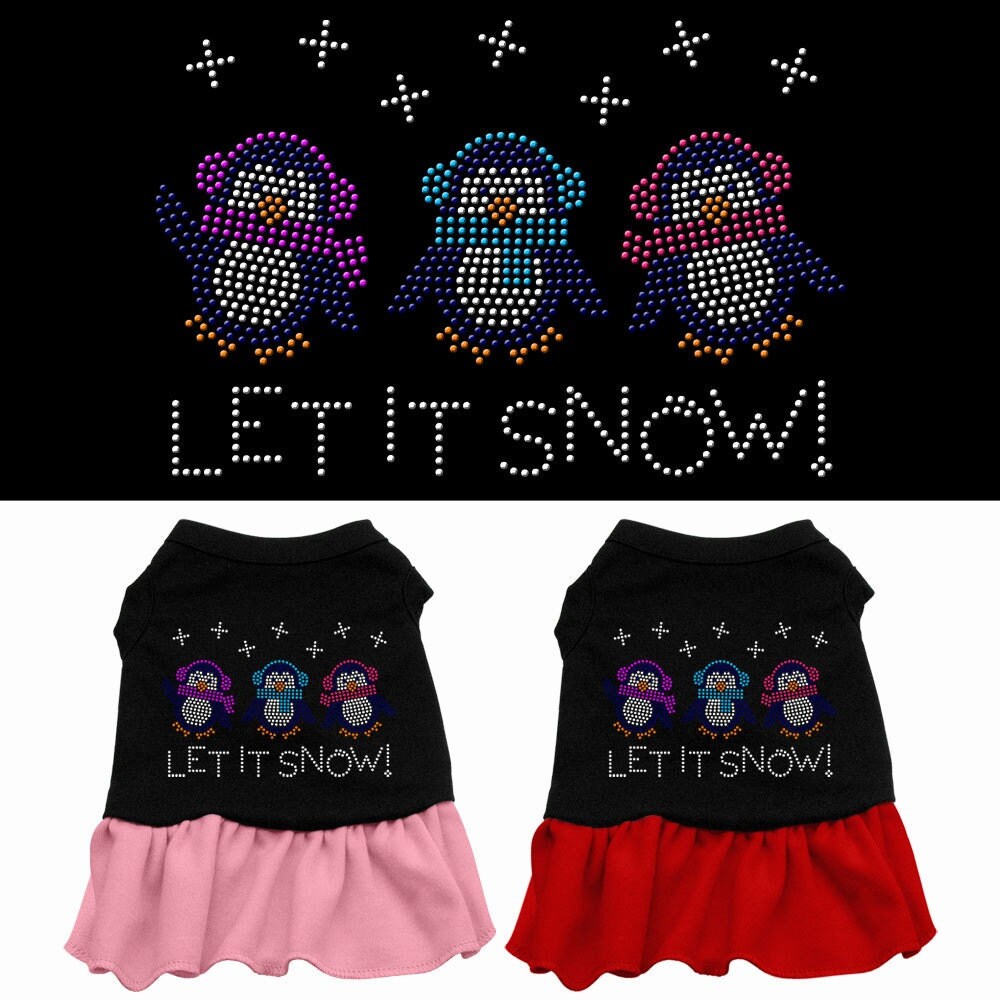 Christmas Pet Dog & Cat Dress Rhinestone, "Let It Snow Penguins"