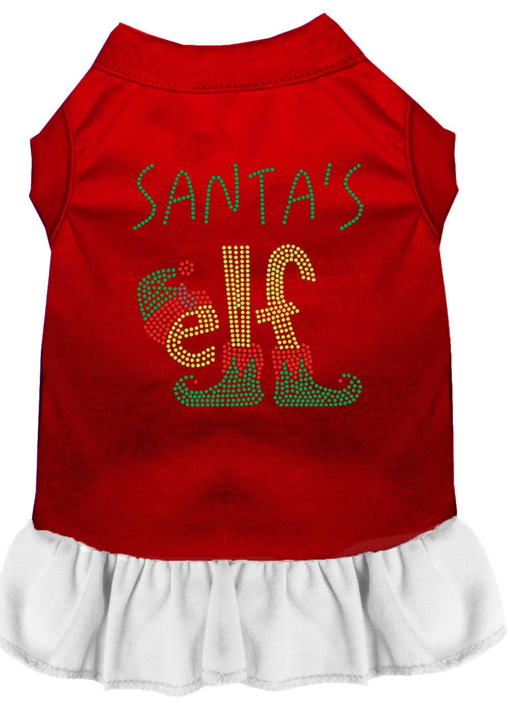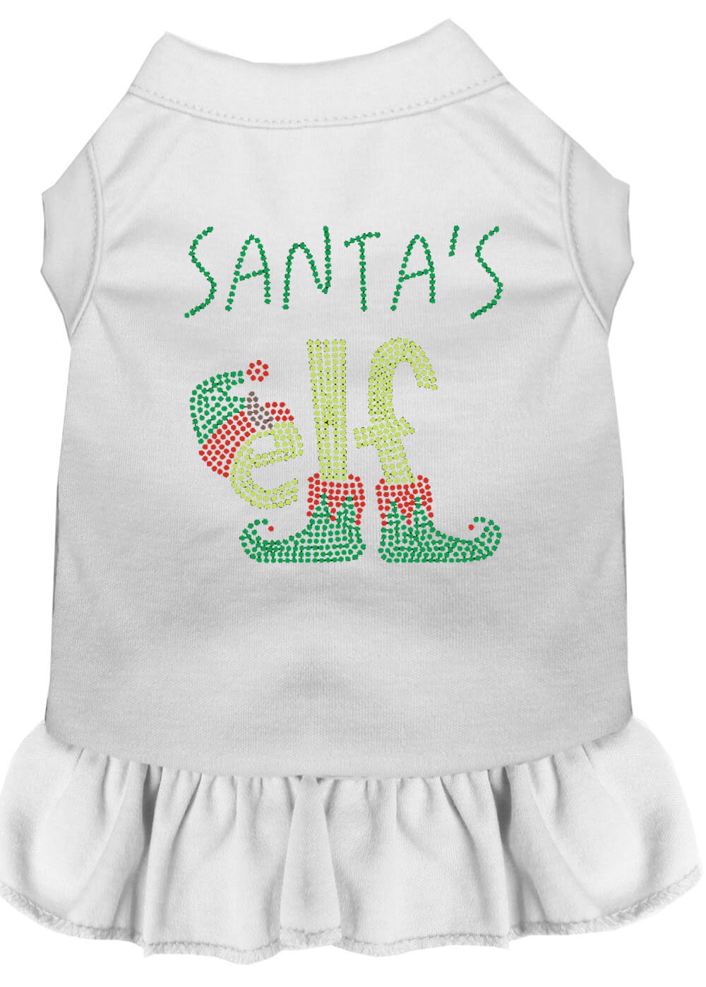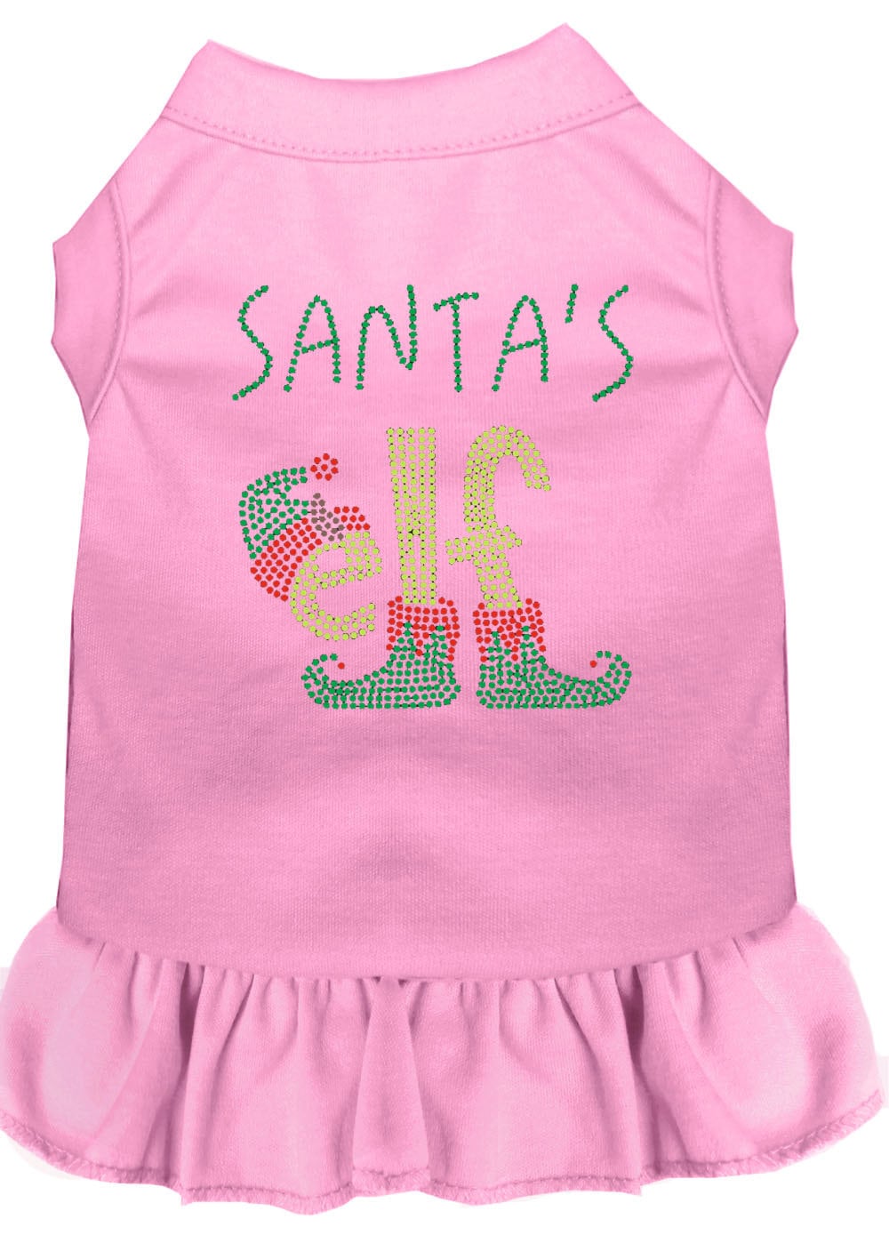 Christmas Pet Dog & Cat Dress Rhinestone, "Santa's Elf"