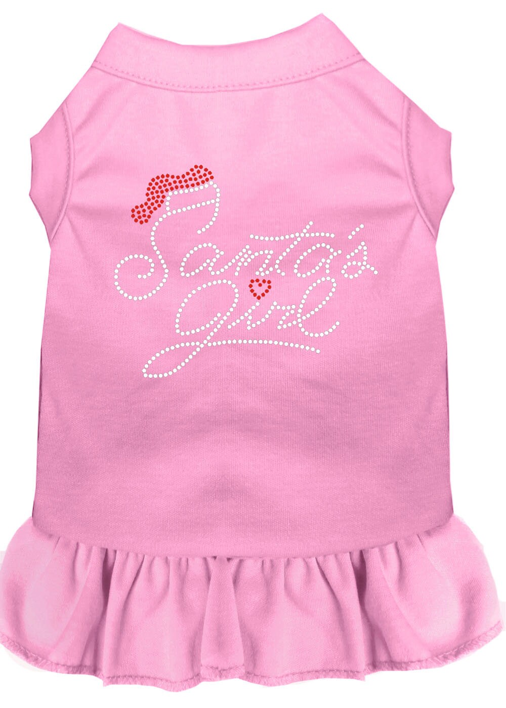 Christmas Pet Dog & Cat Dress Rhinestone, "Santa's Girl"
