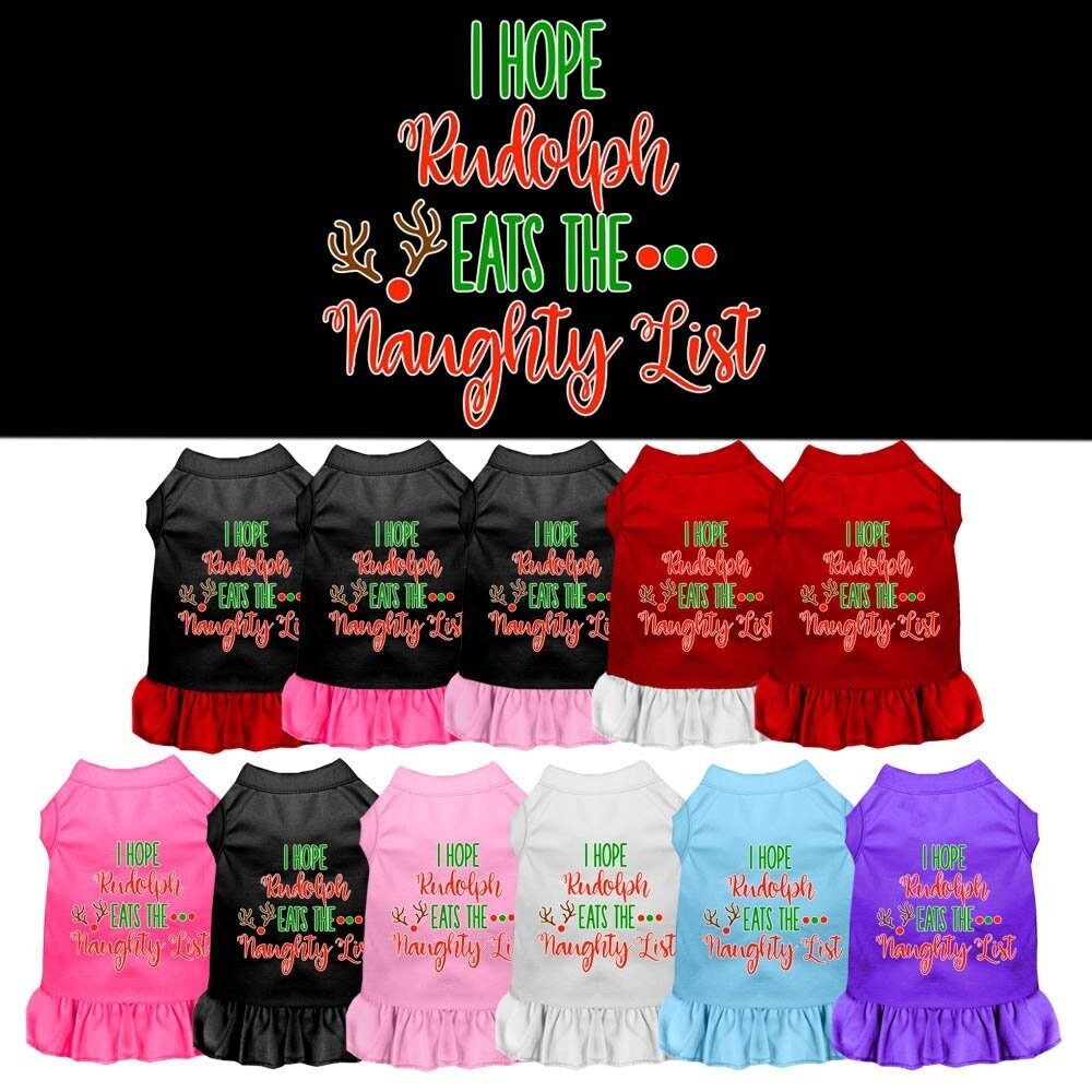 Christmas Pet Dog & Cat Dress Screen Printed, "I Hope Rudolph Eats The Naughty List"
