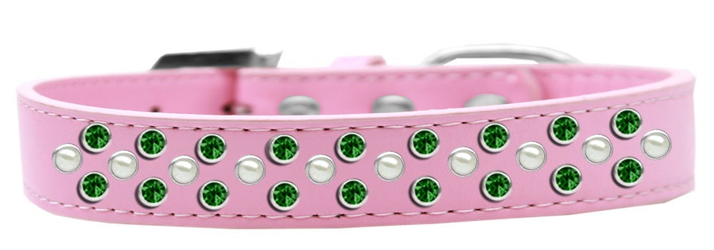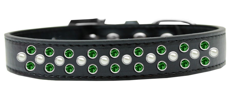Dog, Puppy & Pet Fashion Collar, "Pearl and Emerald Green Crystal Rimsets Sprinkles"