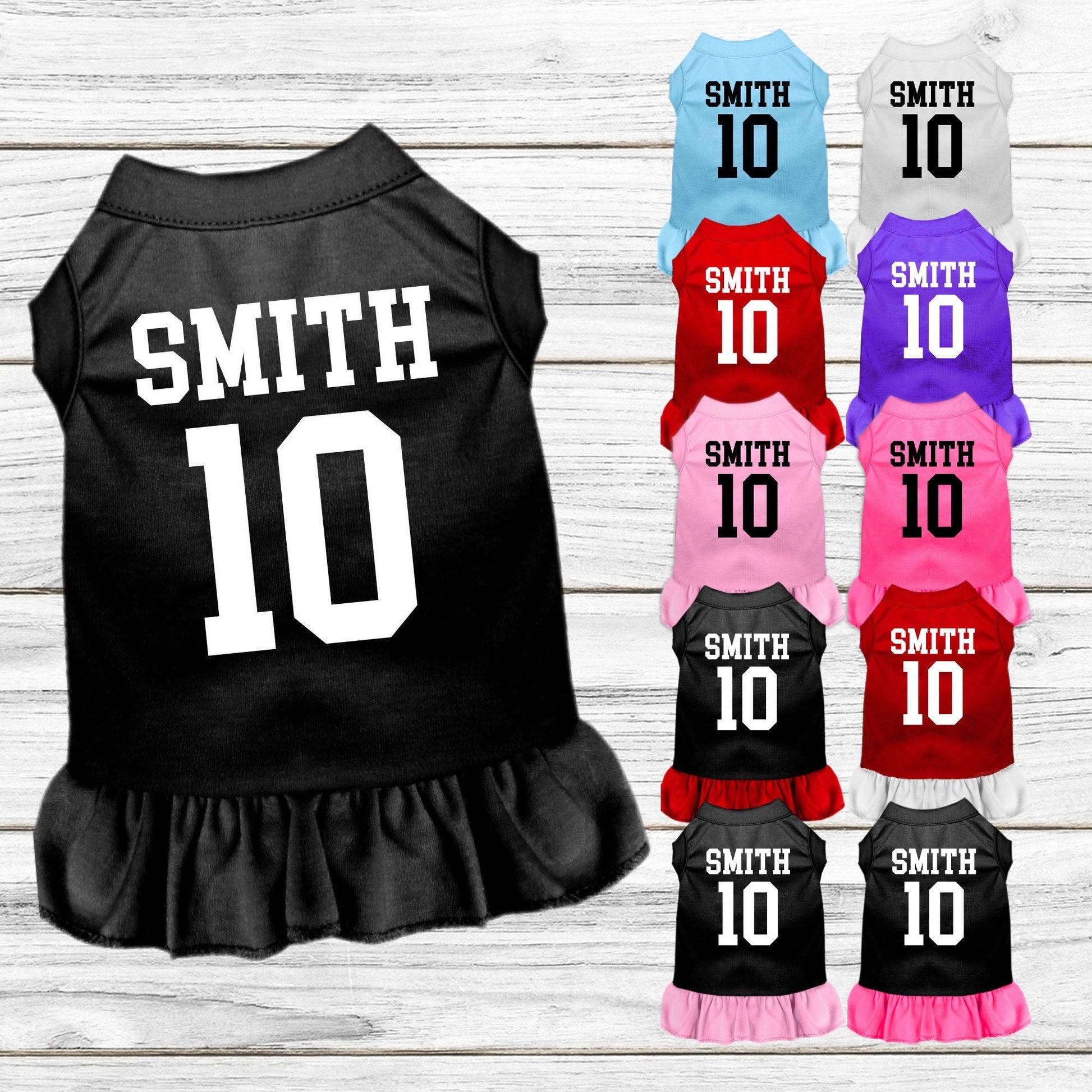 Your fur-baby will be the cutest member on the team with our Custom Team Dress! We can customize by name, number or even your team's name! Simply enter your custom text in the box provided under sizing options.