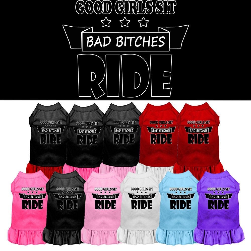 Pet Dog & Cat Dress Screen Printed, "Good Girls Sit, Bad Bitches Ride"