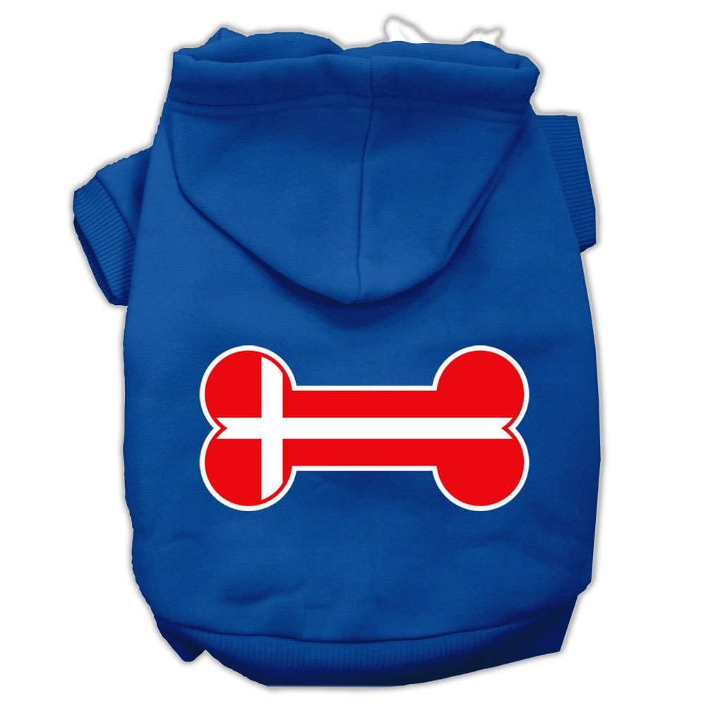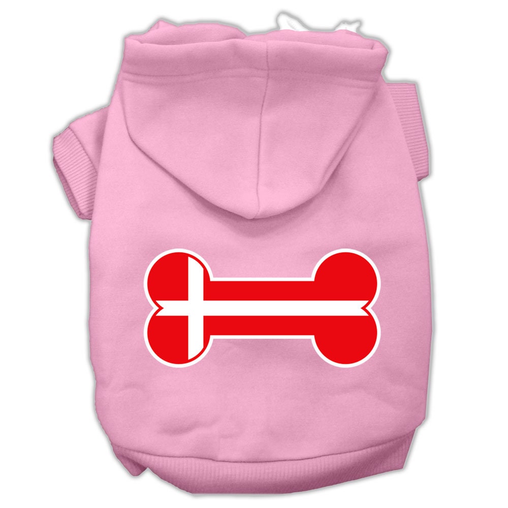 Pet, Dog & Cat Hoodie Screen Printed, "Bone Shaped Denmark Flag"