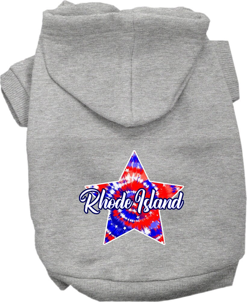 Pet Dog & Cat Screen Printed Hoodie for Medium to Large Pets (Sizes 2XL-6XL), "Rhode Island Patriotic Tie Dye"