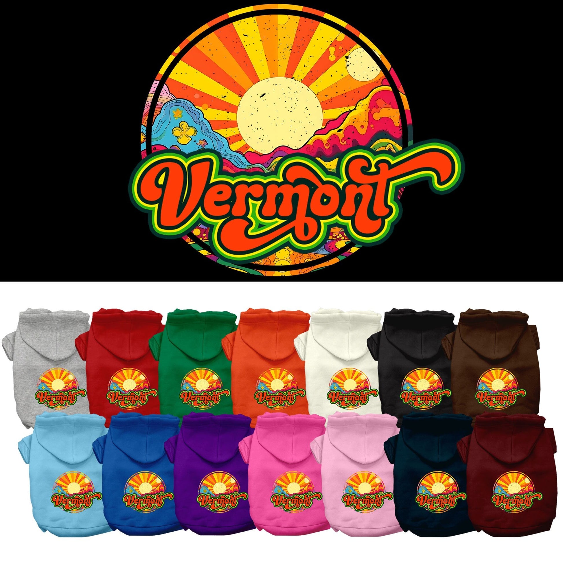 Pet Dog & Cat Screen Printed Hoodie for Medium to Large Pets (Sizes 2XL-6XL), "Vermont Mellow Mountain"