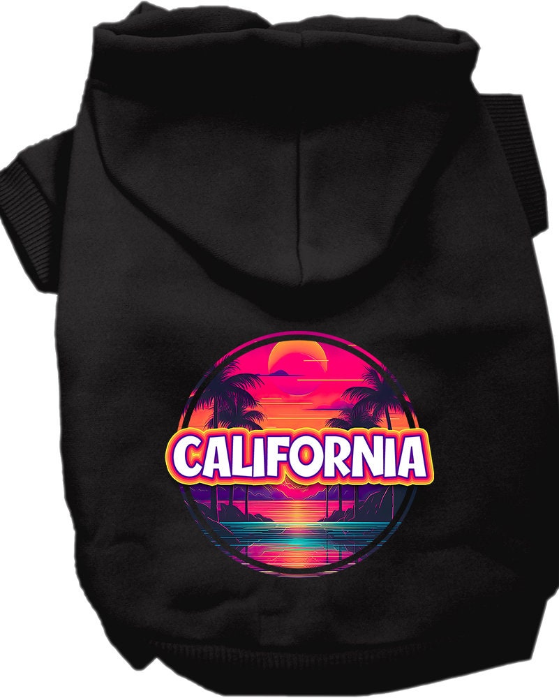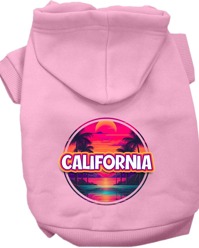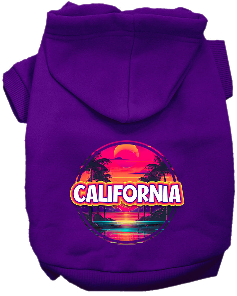 Pet Dog & Cat Screen Printed Hoodie for Small to Medium Pets (Sizes XS-XL), "California Neon Beach Sunset"