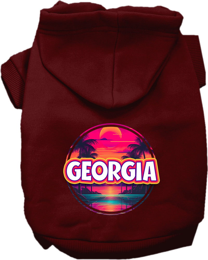 Pet Dog & Cat Screen Printed Hoodie for Small to Medium Pets (Sizes XS-XL), "Georgia Neon Beach Sunset"