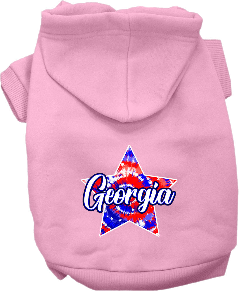 Pet Dog & Cat Screen Printed Hoodie for Small to Medium Pets (Sizes XS-XL), "Georgia Patriotic Tie Dye"