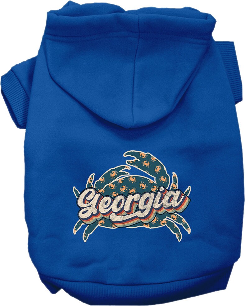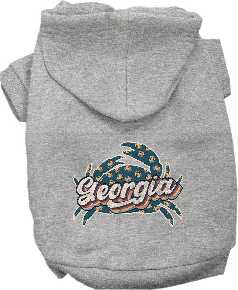Pet Dog & Cat Screen Printed Hoodie for Small to Medium Pets (Sizes XS-XL), "Georgia Retro Crabs"