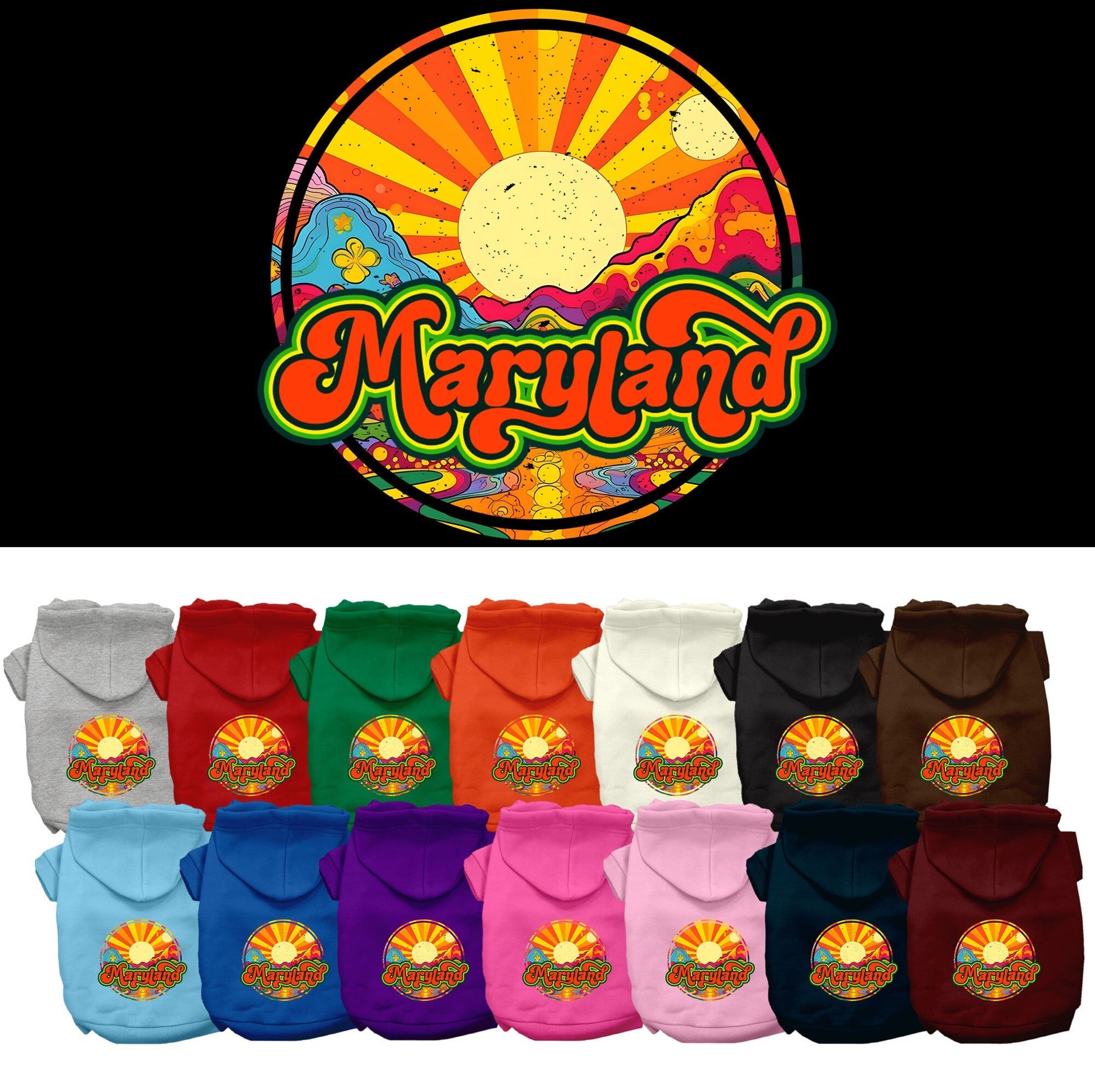 Pet Dog & Cat Screen Printed Hoodie for Small to Medium Pets (Sizes XS-XL), "Maryland Mellow Mountain"