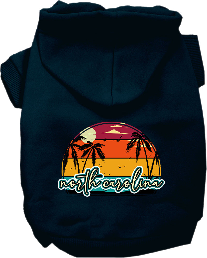 Pet Dog & Cat Screen Printed Hoodie for Small to Medium Pets (Sizes XS-XL), "North Carolina Retro Beach Sunset"
