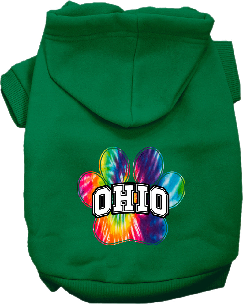 Pet Dog & Cat Screen Printed Hoodie for Small to Medium Pets (Sizes XS-XL), "Ohio Bright Tie Dye"