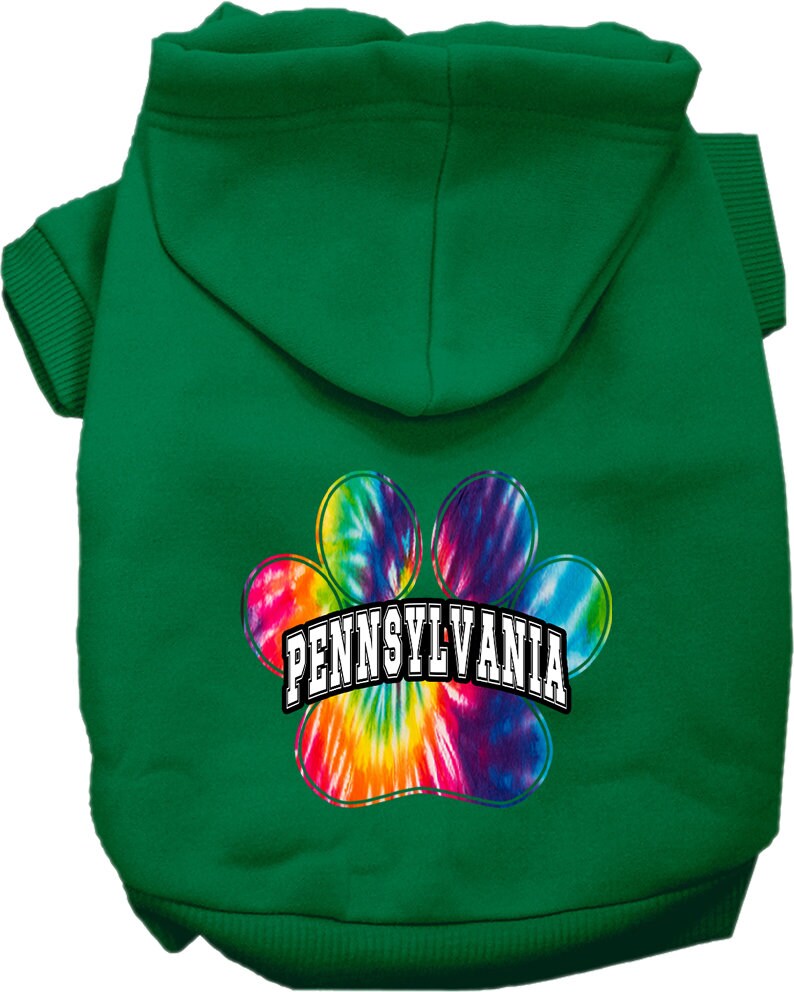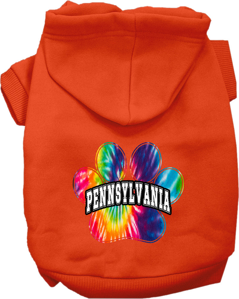 Pet Dog & Cat Screen Printed Hoodie for Small to Medium Pets (Sizes XS-XL), "Pennsylvania Bright Tie Dye"