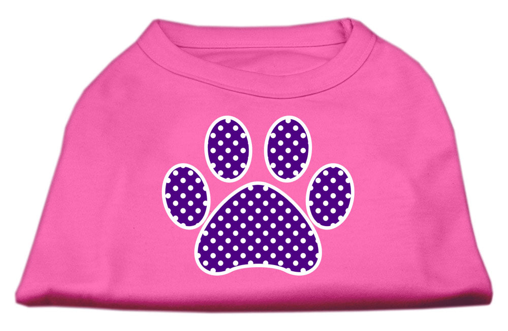 Pet Dog & Cat Shirt Screen Printed, "Swiss Dots Purple Paw"
